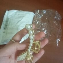 I think this is an excellent hairpin! It’s very good looking, has an unusual design. It is quite big but not heavy at all. It holds hair very well (I have quite a long one) but at the same time it does’n scratch the skin. And these tiny pearls at the tail are so cute and vell made!